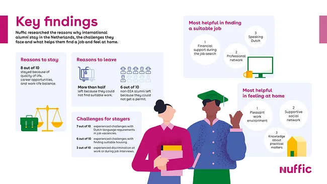 Their decision to remain in the Netherlands brings long-term benefits to the Dutch economy, especially in a tight labor market that is seeking continual growth and innovation. growing shortages of skilled professionals. This increase of specialized skills and international experience helps companies to grow and stay relevant in the global market.